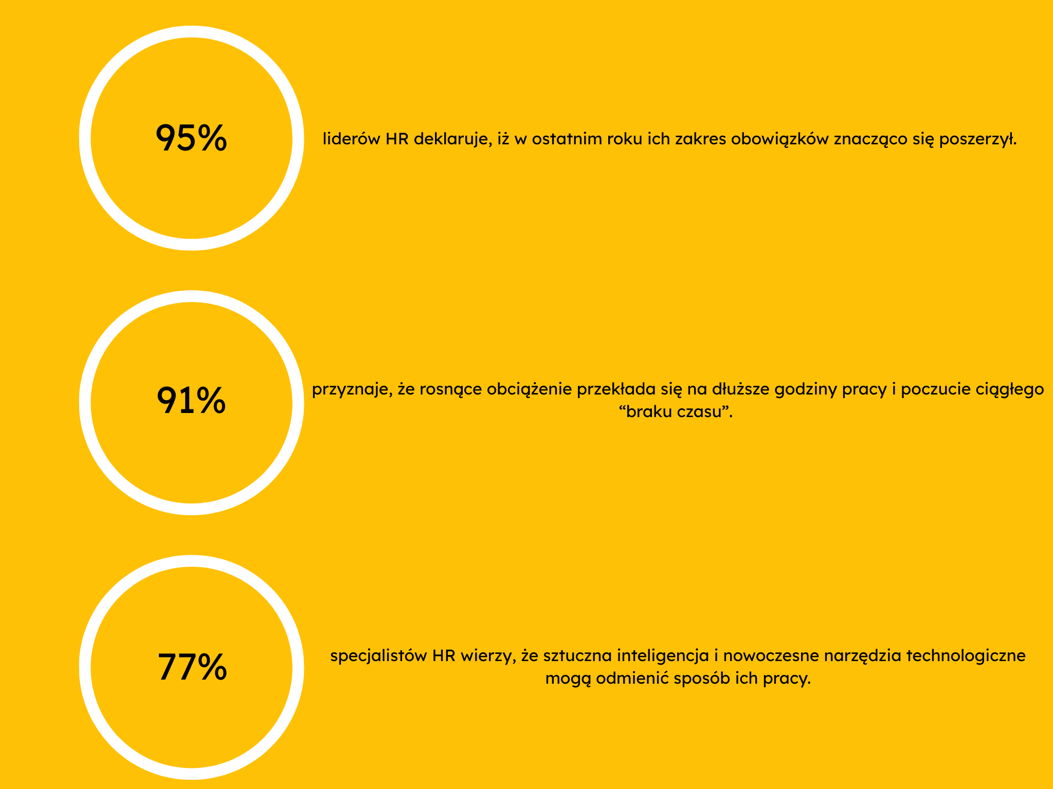 Managing hybrid teams, caring for people in times of uncertainty, and resource planning are the everyday reality of HR departments today. It is not surprising, then, that 95% of HR leaders declares that in the last year their scope of responsibilities has expanded significantly. What's more, 91% admits that the increasing workload translates into longer working hours and a feeling of constant “lack of time”. In the face of these challenges, however, there is hope - 77% of HR professionals believes that AI and modern technological tools can transform the way they work, removing the burden of routine tasks and allowing them to focus on strategy and supporting people, which has always been at the heart of the profession.